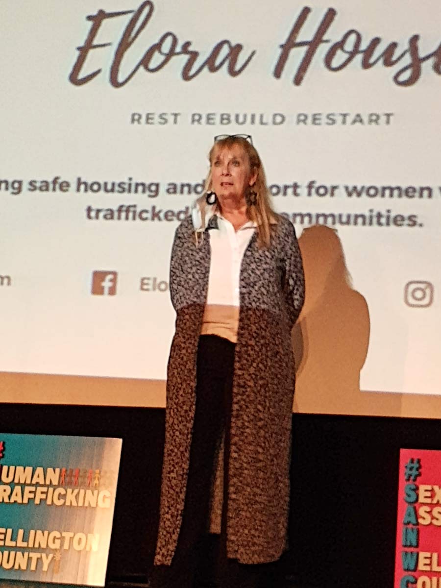 The event was hosted by Elora House, the residential facility for victims of human trafficking that opened in 2020, and Barbara Lustgarten-Evoy, a member the organizing committee, who spoke on the facility’s behalf.