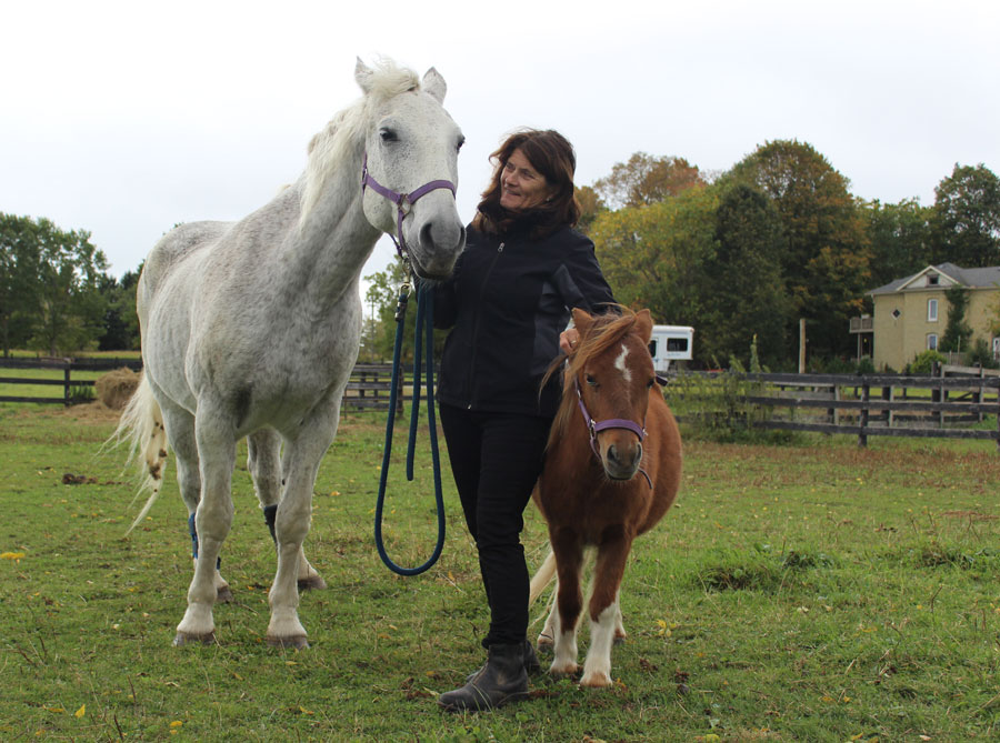 Irish Creek Stables owner and manager Liz Lewis standing with Andi, left, and Merrylegs. Lewis said she was very worried about them both during the outbreak, as they both suffered significant symptoms. Photo by Robin George