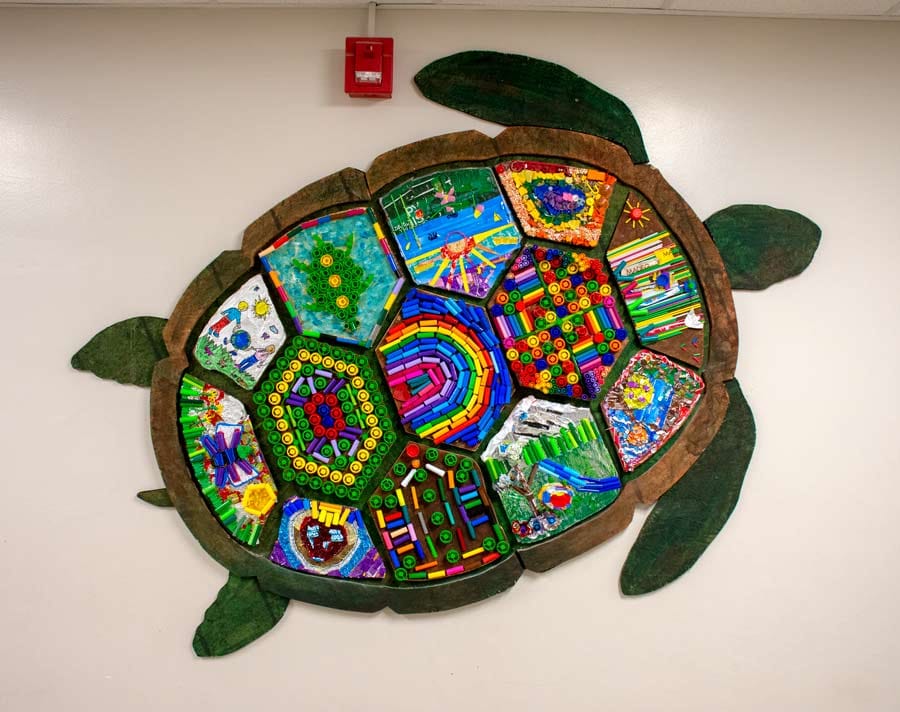 “A class along with their teacher was designing the piece and what it would look like, not knowing that in the end it would end up being part of a turtle because that is something we would reveal to them at our Earth Day assembly,” McGregor said.