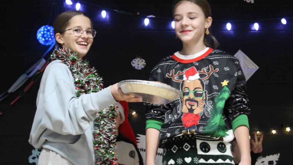 Slick, snowy roads meant school buses were cancelled on Dec. 19, but that didn’t stop hundreds of kids from showing up to school, many wearing Christmas-themed sweaters, Santa hats, elf caps, reindeer antlers or sparkling tinsel.