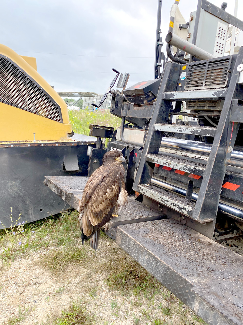 WALKERTON – The large bird had been hanging around the construction equipment in East Ridge Business Park, Walkerton, for a day or two when Matt Brownson noticed him.