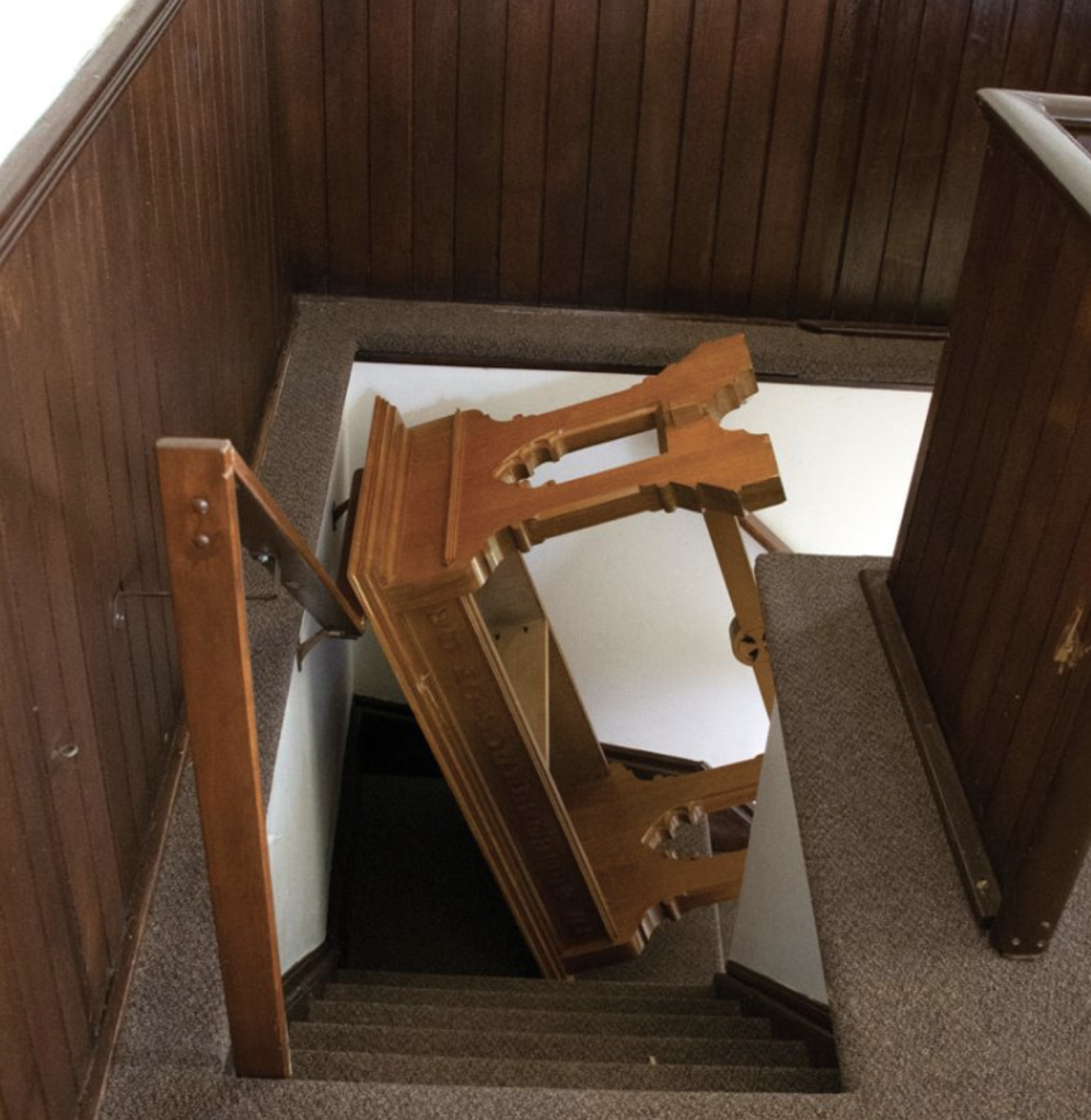 They couldn’t get this table down the stairs, however, andleft it jammed in the stairwell. Photo by Joanne Shuttleworth