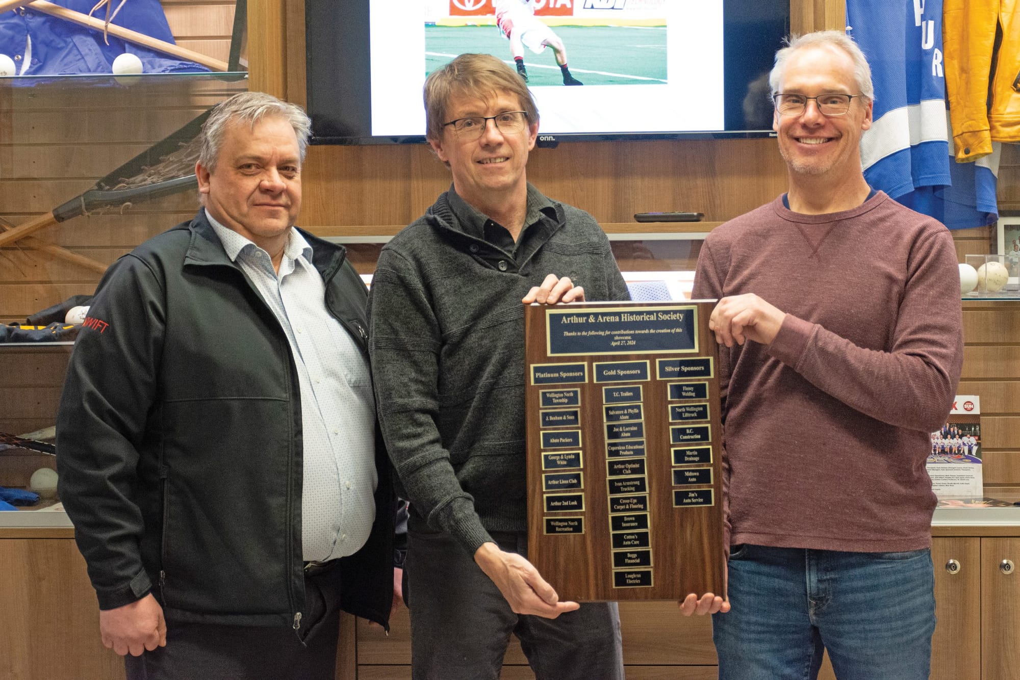 ARTHUR – A new exhibit has arrived at the Arthur and Area Community Centre showcasing the community’s past. “This project, it will forever be a fine example of what we can do when we all work together,” Arthur and Area Historical Society member Jeff McKee said at an opening ceremony on April 27. John Benham donated his time in designing and building the cabinets for the rotating exhibits. Lacrosse memorabilia is currently on display, but McKee said the next ones could be themed for the upcoming fall fair, or the 150th anniversary of St. Andrew’s Presbyterian Church.