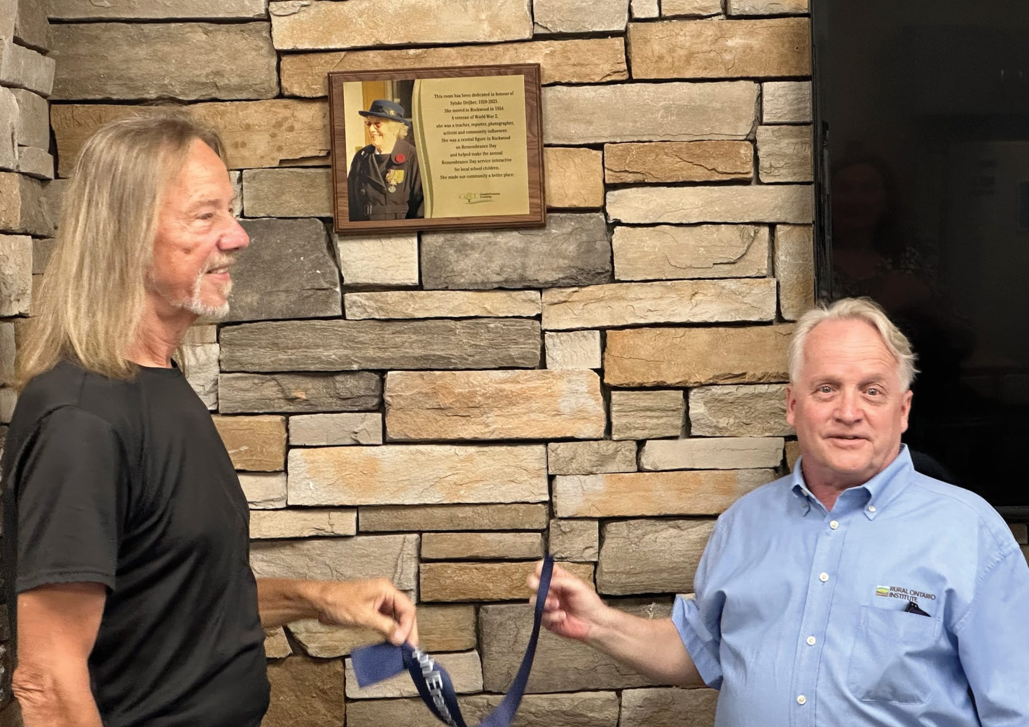 Sytske was a central figure in Rockwood’s Remembrance Day ceremonies and events, and in the photo on the plaque, she is shown wearing her military medals, with a poppy pinned to her left lapel.