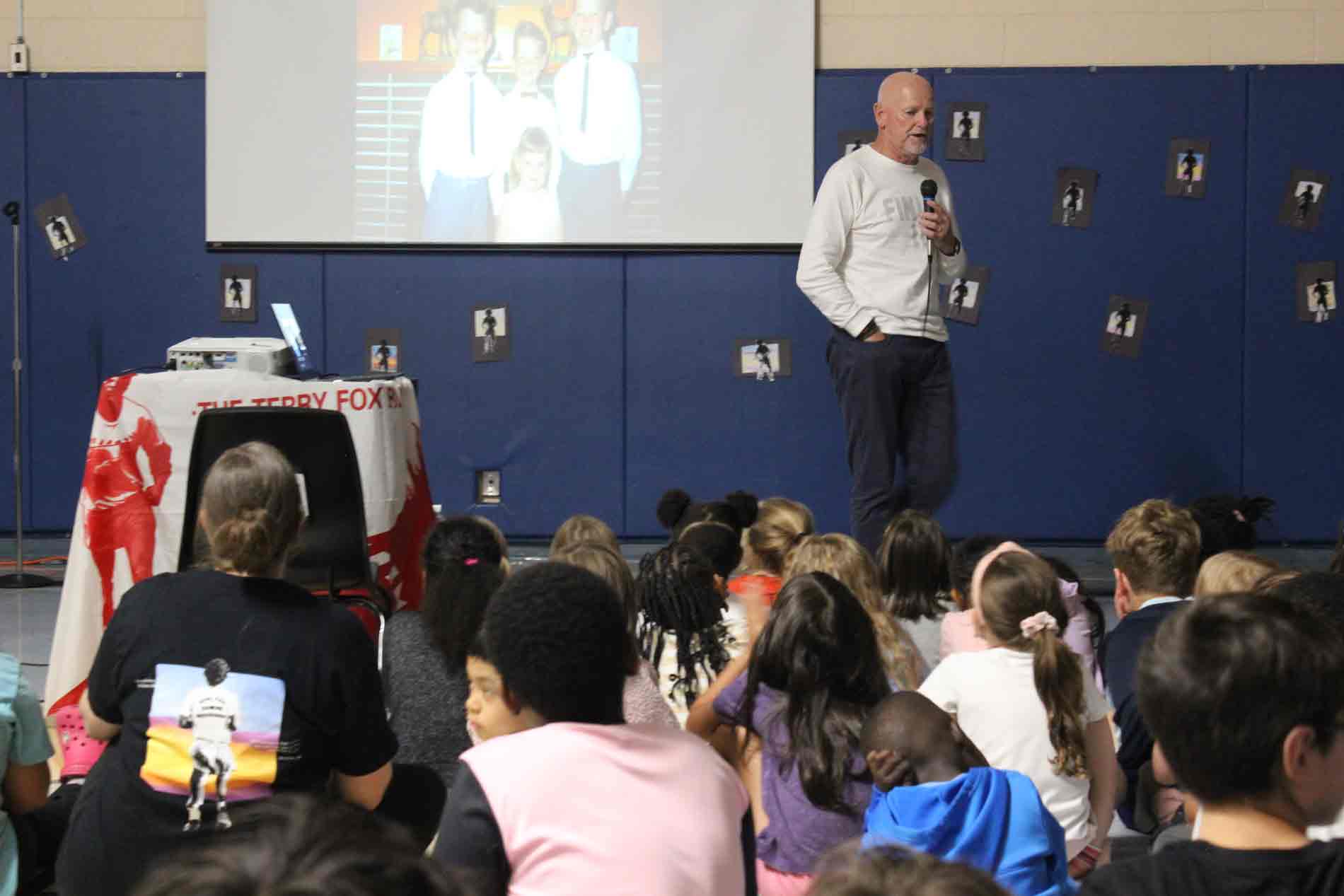 Addressing the students at the Guelph elementary school, Fred encouraged them to follow in Terry’s footsteps by setting goals, working hard and never giving up on their dreams.