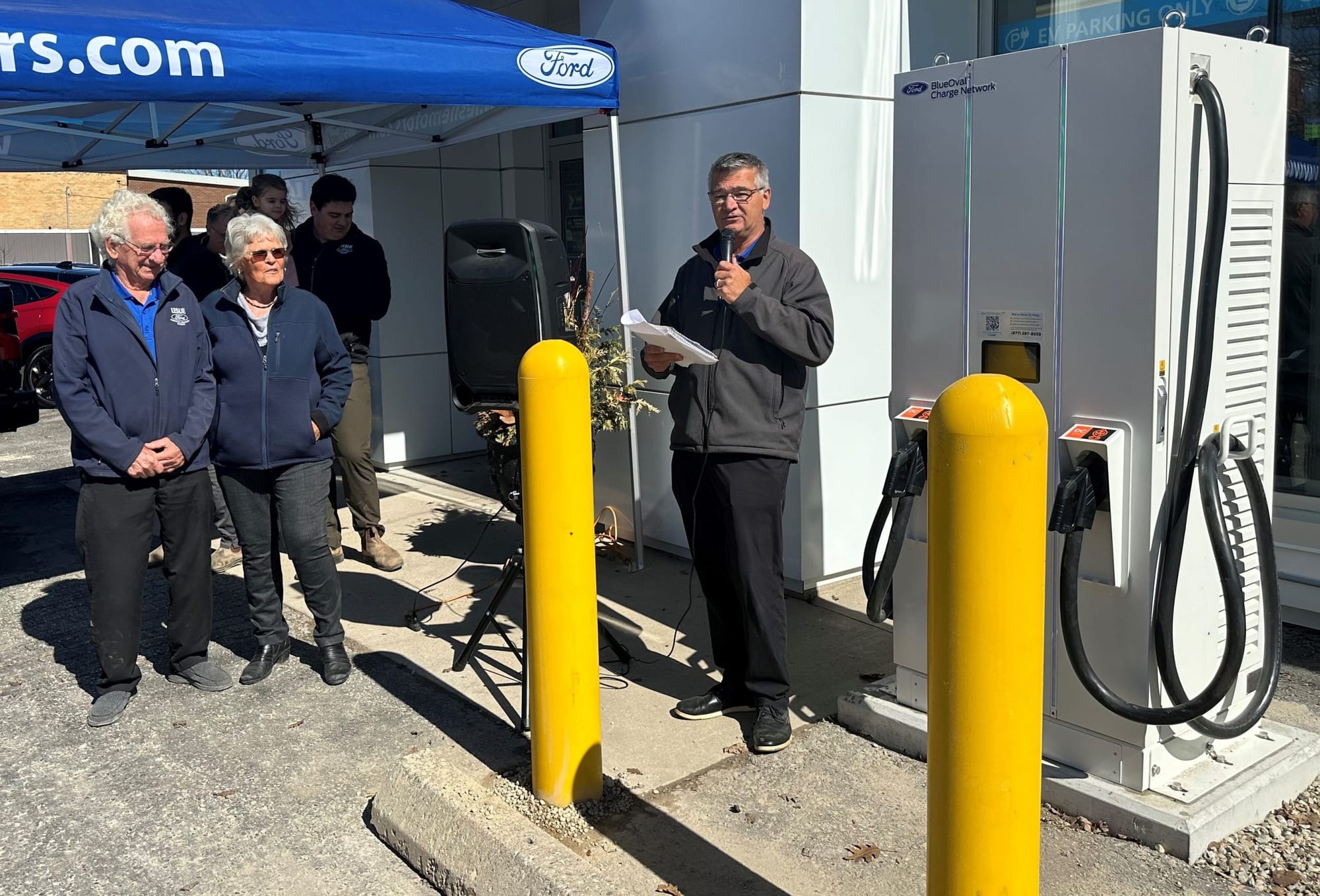 Leslie Motors held a grand opening for two new level three EV charging stations at its Elora Street Ford dealership on April 6.