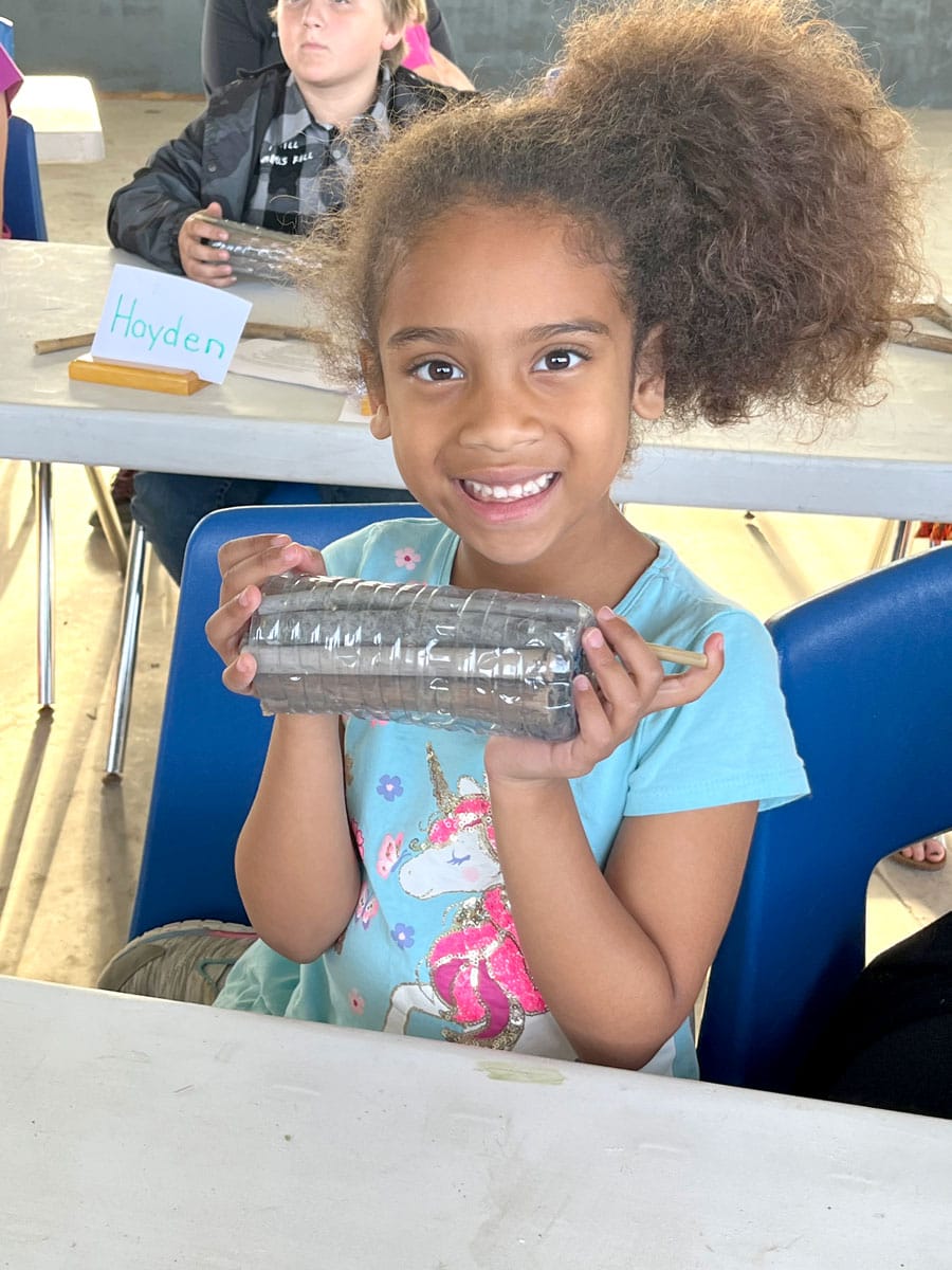 Faith Richards holds a pollinator habitat created during the program.