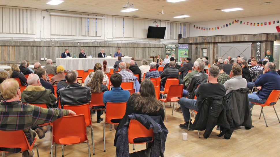 The event, hosted by the Perth County Federation of Agriculture (PCFA) in conjunction with the Listowel Agricultural Society and Wellington Federation of Agriculture, was attended by John Nater of the Conservative Party, David Mackey of the Liberal Party, Wayne Baker of the People’s Party of Canada (PPC) and Kevin Kruchkywich of the New Democratic Party (NDP).