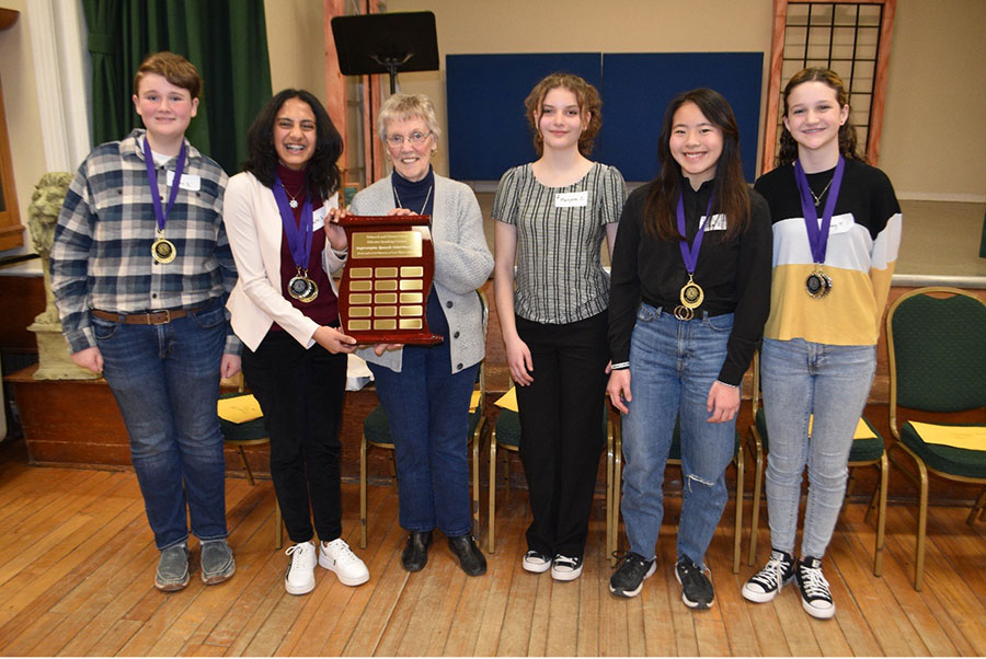 Effective speakers – On March 21, the Belwood and District Lions Club hosted the 2023 Effective Speaking Competition for local elementary school students for the first time since 2019. Teachers from J.D. Hogarth, East Garafraxa, St. John Brebeuf and St. Mary Catholic sent candidates from Grades 4 to 8, who “wowed the judges and audience of families and friends with their confidence and poise,” club officials say. In the Junior English category, Liam Ricketts (St. John Brebeuf) won first place and JP Morgan (St. Mary) won second place. In Junior French Ashlyn Wilson (J.D. Hogarth) won first and Sophia Szczepko (J.D. Hogarth) won second. Lucas Smith and Sheetal Dubey, both of East Garafraxa, finished first and second respectively in the Intermediate English category. In Intermediate French, Erin Jimuro and Riley Turner, both of J.D. Hogarth, claimed the top two spots. In the Impromptu Intermediate category, Dubey came first and Turner finished second. “The Belwood Lions hope to be back next year; bigger and better with more schools joining in the event and promoting excellence in public speaking,” officials stated. Ev Robson was on hand to award medallions to the first and second place winners, dedicating a plaque to the memory of her late husband, Wayne Robson, who was a Belwood Lion for over 30 years and organizer of the event’s impromptu competition. From left are: Smith, Dubey, Robson, Maryanna Curry, Jimuro and Turner.
