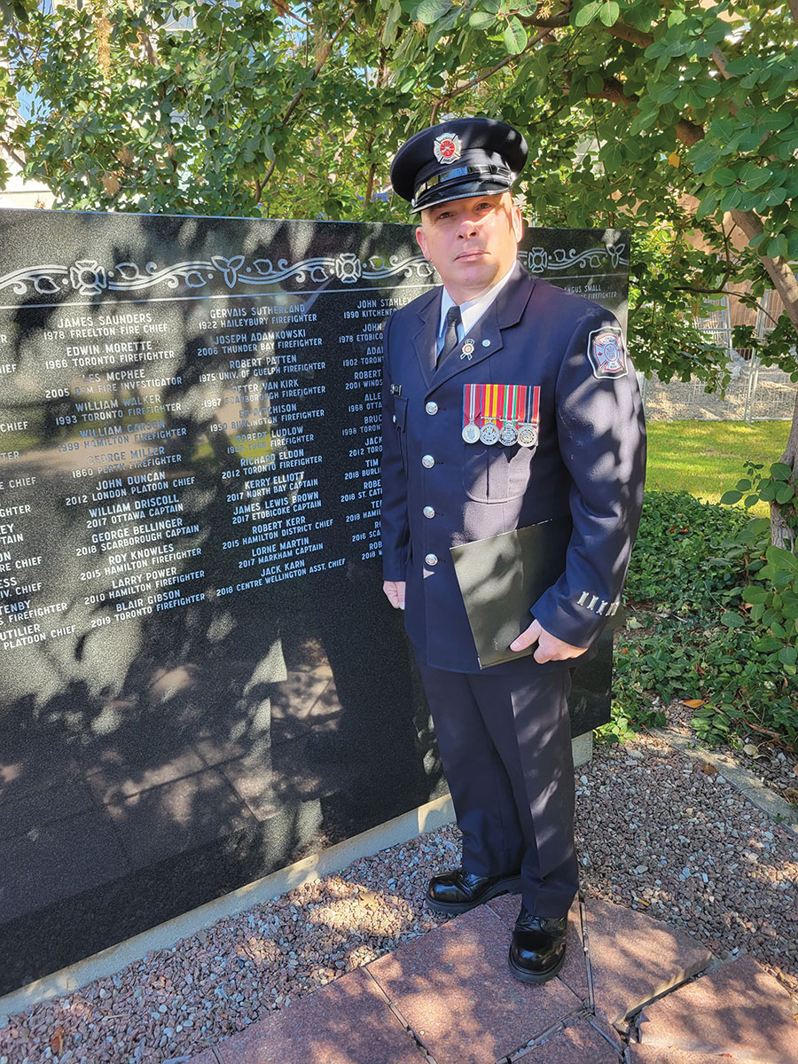 Honouring the fallen – Jamie Hiller, a firefighter with Centre Wellington Fire Rescue and a director of the Fire Fighter’s Association of Ontario, represented the latter during a service honouring Ontario’s fallen firefighters at Queens Park in Toronto on Oct. 2. Hiller made a speech recognizing the service of his fellow volunteer firefighters. Among the names read out at the event was Jack Karn, former Centre Wellington assistant fire chief who passed away in 2018.