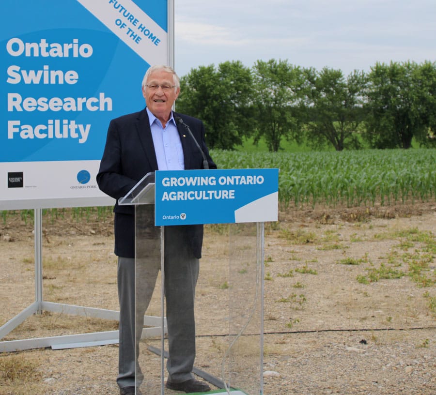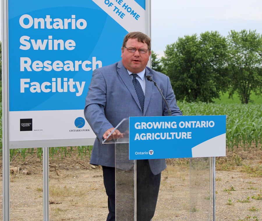 Minister of Agriculture, Food and Rural Affairs Ernie Hardeman addressed concern over the China ban during the announcement of a new swine research facility in Elora on July 2.