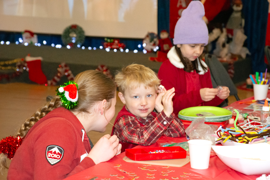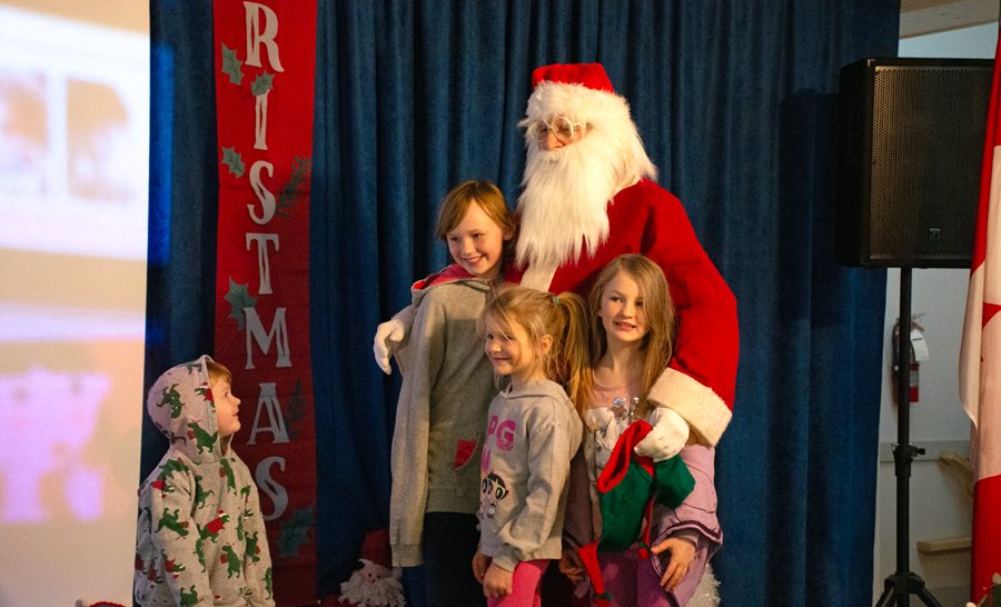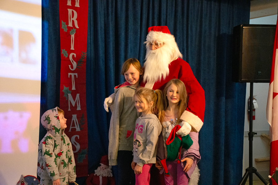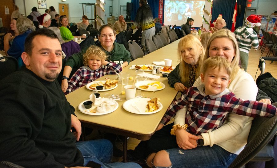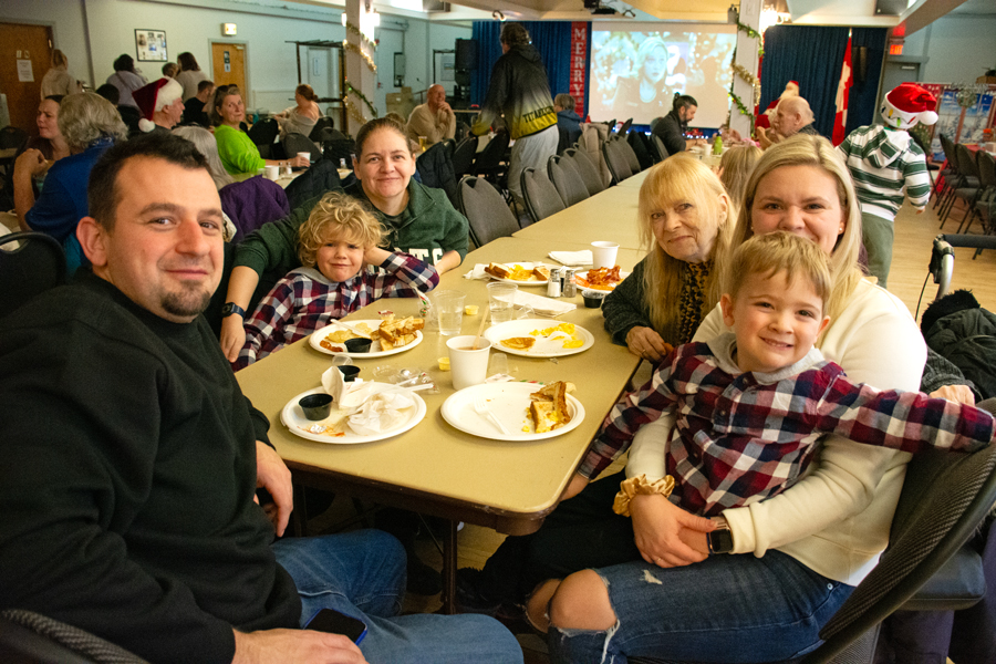 Locals enjoyed a festive breakfast with Santa at the Erin Legion Dec. 14. Joanne ShuttleworthDecember 17, 2025 @ 9:00 amNews Photos by Joanne Shuttleworth Paul Quinlan, left, donned a Santa hat for the Breakfast with Santa event at the Erin Legion but he didn’t fool his granddaughters Danika and Aubrey, seated on either side of their grandmother Debbie. Clayton Baigent, left, didn’t want to get too close to Santa, but enjoyed an informal chit chat as his sisters Alexis, Maddison and Kylie snuggled in close. Elizabeth Smith-Marshall, left, helps Wesley White work on a craft at the Erin Legion’s Breakfast with Santa event. The Erin Legion hosted Breakfast with Santa on Dec. 14 and it got busy as volunteers continually brought out more tables and chairs. Here the cooks gather for a photo before the rush began. Breakfast time was family time for the Eckert/Leger family. From left: Alex Eckert, Jake Eckert, Katherine Leger, Susan Leger, Jessica Eckert and Liam Eckert. Photos by Joanne Shuttleworth ERIN – Santa got some down-time at the Breakfast with Santa event at the Erin Legion on Dec. 14. Joanne Shuttleworth Reporter