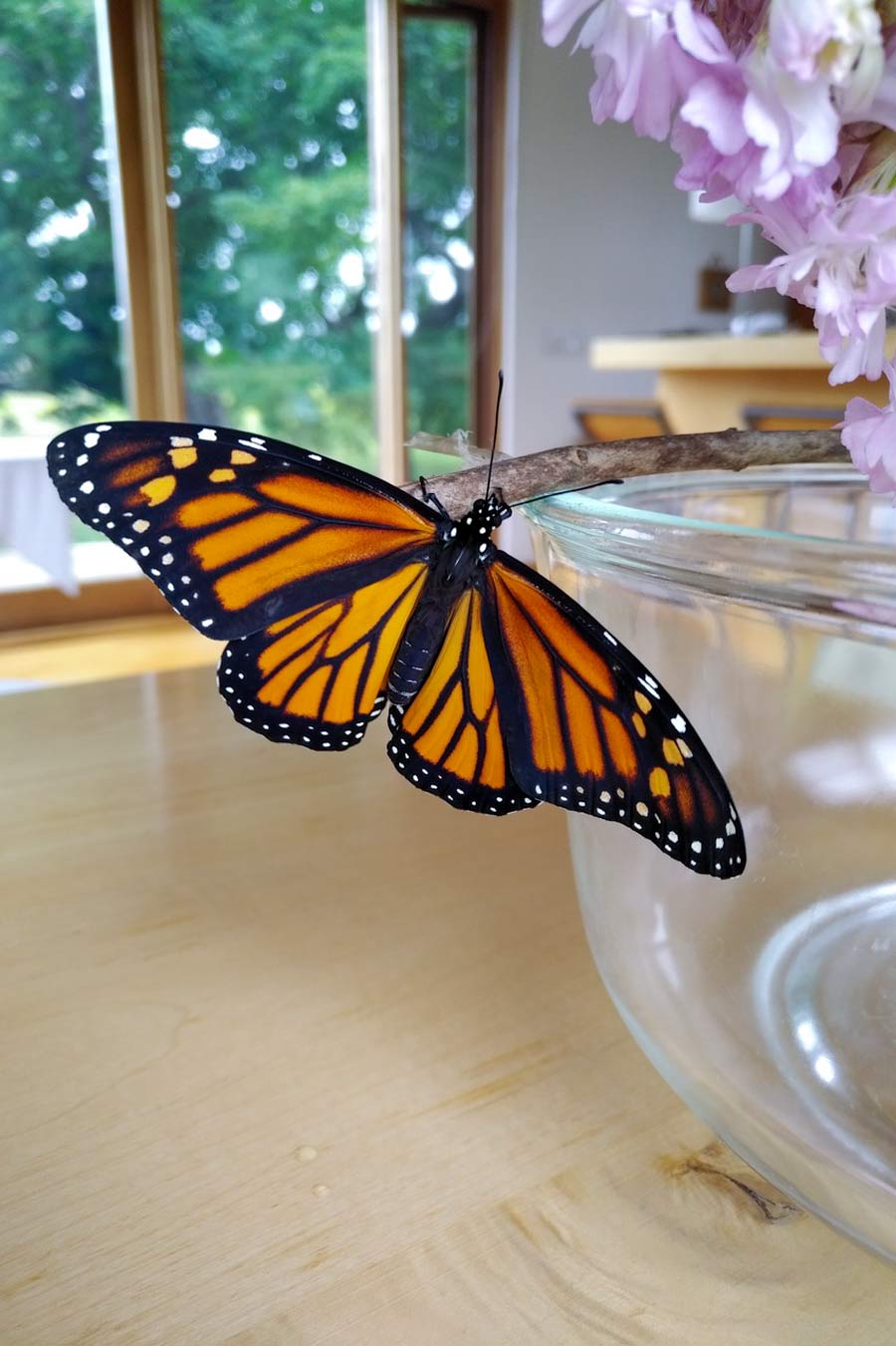 Once the butterfly emerges from the chrysalis, after about eight to 15 days, it’s time to release it into the wild.