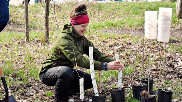 CENTRE WELLINGTON – On a wintry April 20, volunteers from Neighbourwoods gathered to plant trees along the Trestle Bridge Trail from Fergus to Elora.