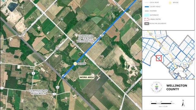 CENTRE WELLINGTON - Carroll Creek Bridge on Wellington Road 18, approximately 5.9km west of Wellington Road 7 in Centre Wellington, is set to begin construction on July 31 with a completion date of Oct. 27.