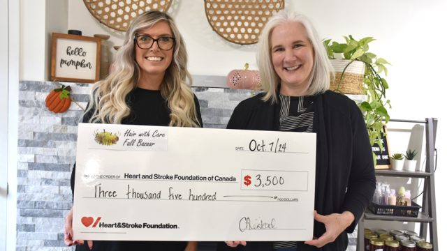 FERGUS – This was the fourth year Carrie Anne Kierstead, left, organized the Hair with Care Fall Bazaar, held on Sept. 8 at her hair salon on St. Patrick Street in Fergus, and she raised $3,500 for the Heart and Stroke Foundation of Canada.