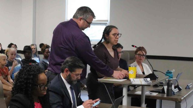 GUELPH – “Fund our schools, not policing in schools.” That was the resounding message from a group gathered in front of the Upper Grand District School Board office (UGSDB) on Oct. 2.