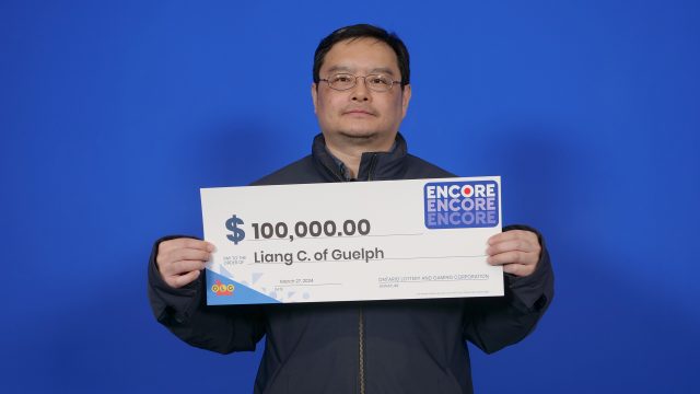 GUELPH – Liang Chen of Guelph matched the last six of seven ENCORE numbers in the exact order in the Feb. 14 LOTTO 6/49 draw to win $100,000.
