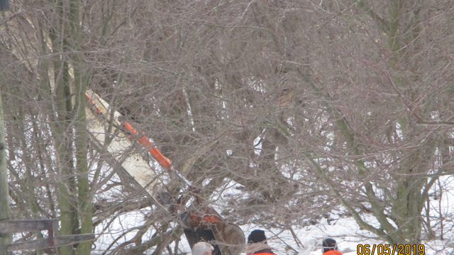A fallen tree caused ice to collect, creating a potential flood threat along the Maitland River at…