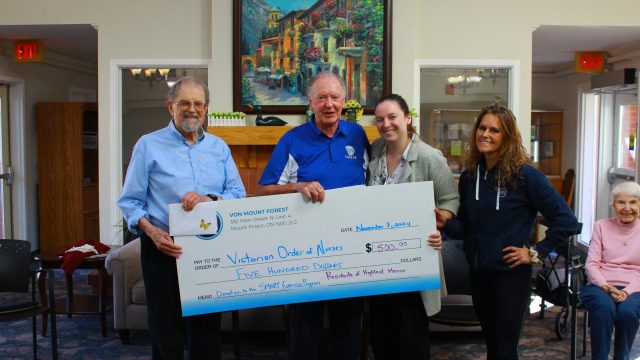 WELLINGTON COUNTY – Residents of Highland Manor presented a cheque for $500 to the SMART Exercise program Nov. 7.