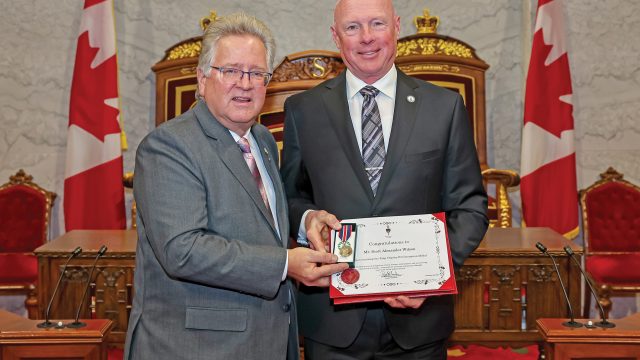 WELLINGTON COUNTY – County of Wellington chief administrative officer Scott Wilson, right, was in Ottawa on Nov. 22 to receive a King Charles III Coronation Medal, which was presented by Senator Rob Black, left.