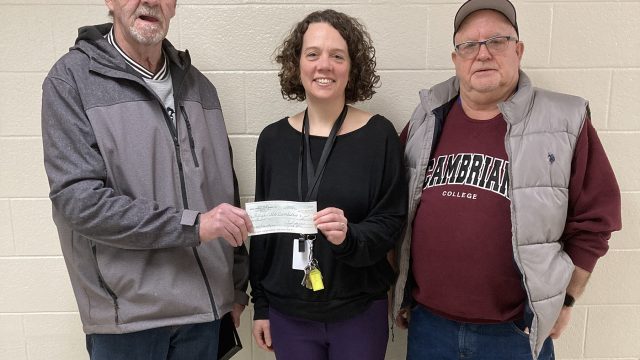 WELLINGTON COUNTY – Catch the Ace Co-chair Tim Noonan presented a $1,000 cheque to principal Michele Hasson from the Wellington Catholic District School Board to go toward the St. Mary’s Lunch Program.