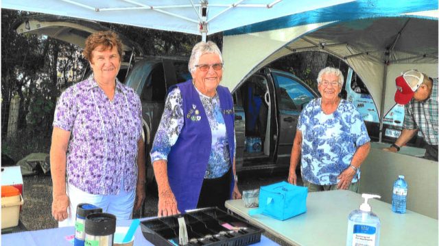 Hospital helpers – Louise Marshal Hospital Auxiliary volunteers have been operating a food booth at the Mount Forest Farmers Market this summer, providing drinks and snacks for market-goers, as well as a space to visit.