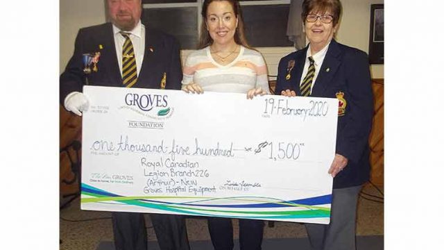 Groves hospital donation – On Feb. 19, Sarah Sheehan, centre, of the Groves Hospital…
