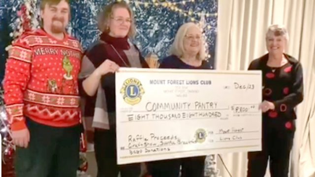 MOUNT FOREST - The Mount Forest Lions presented Donna Leach of the Community Pantry (food bank) with a donation of $8,800.