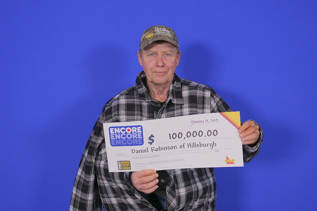 Daniel Robinson of Hillsburgh won $100,000 with Encore in the Nov. 28 Lotto 6/49 draw. He matched six of seven Encore numbers in exact order to win the $100,000 prize. The winning ticket was purchased at Foodland on Trafalgar Road in Hillsburgh. Submitted photo