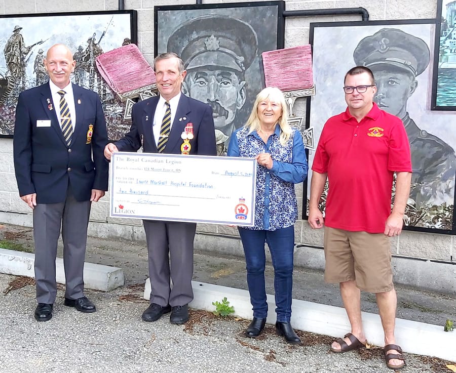 MOUNT FOREST - The Royal Canadian Legion (RCL) recently presented two donations to the Mount Forest Louise Marshall Hospital Foundation (LMHF), in support of funding equipment for the hospital.