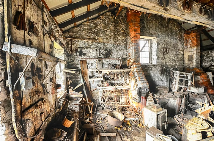 The Lynes Blacksmith Shop opened in 1885 in a thriving village along the Garafraxa Road, now Highway 6. For two generations the family operated the busy shop, helping to keep stage coaches on the road and farm machinery running. It closed in 1955.