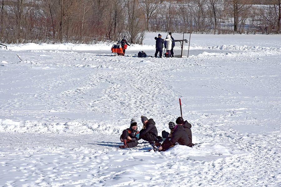 Making tracks at the tract - Dogs and their humans enjoyed a lap around the lake at the Puslinch Tract Conservation Area on Feb. 7. The lake was frozen and several groups cleared snow for skating. The conservation area, located on Wellington Road 32 just south of the 401, attracts hikers, skaters, cyclists, and cross-country skiers.