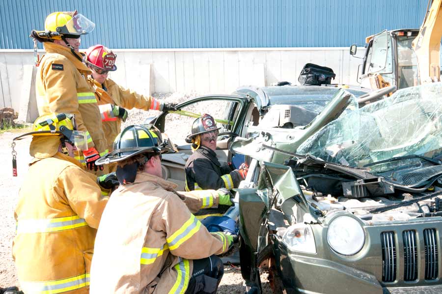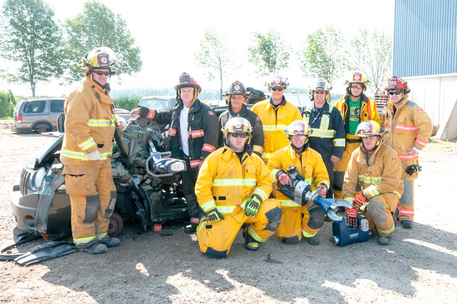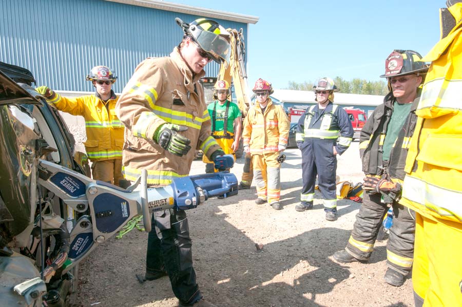 Training day – Mapleton firefighters got a demonstration of the power and range of a new spreading tool used for automotive extractions at a special training day at the fire hall in Moorefield on July 13.