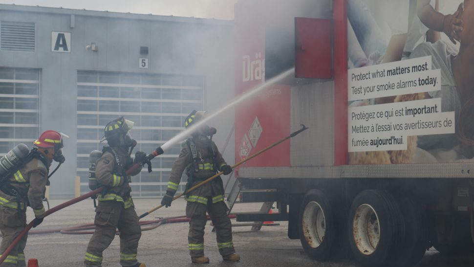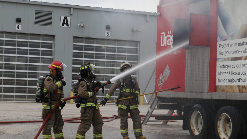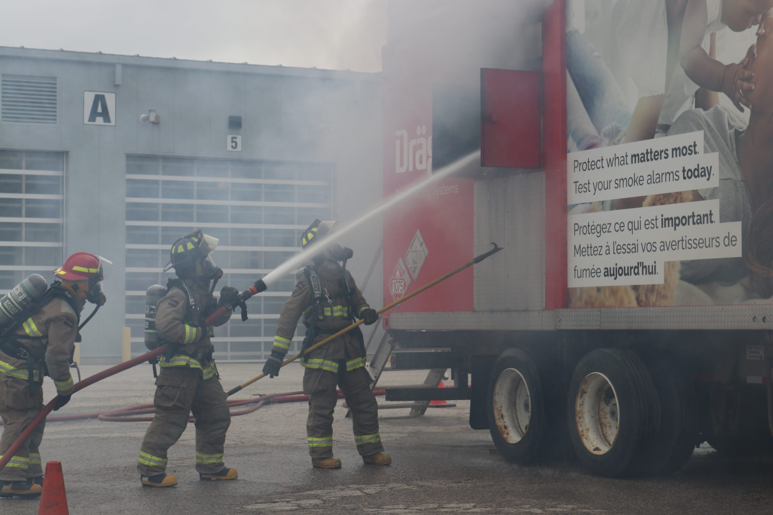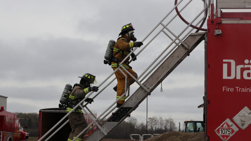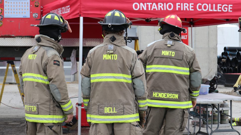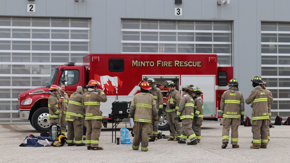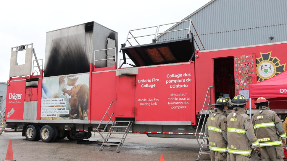 MAPLETON – On May 3, Mapleton, Minto and Wellington North fire services got together to tackle the Ontario Fire College Mobile Live Fire Training Unit. This marks the first time Mapleton has received the training trailer as municipalities must apply for one of the five units. Roughly 50 volunteer firefighters went through the training process last Saturday, with nearly 200 going through the trailer from April 30 to May 4. According to training officer Derrick Givens, the whole process takes two hours to complete.