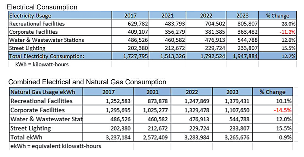 At the township’s corporate facilities, energy consumption decreased by 11% from 2017 to 2023. Trottier said part of the reason for that is “we got rid of the Maryborough road shop.”