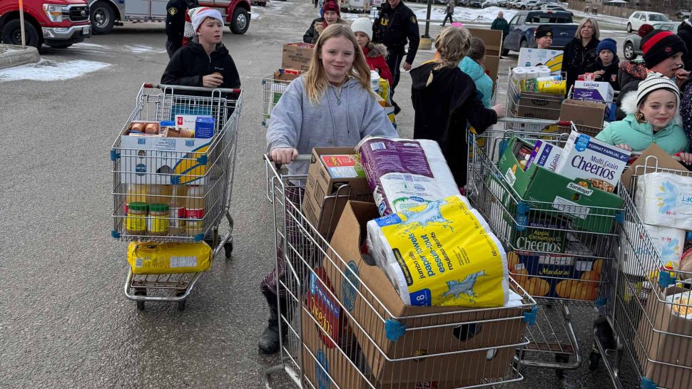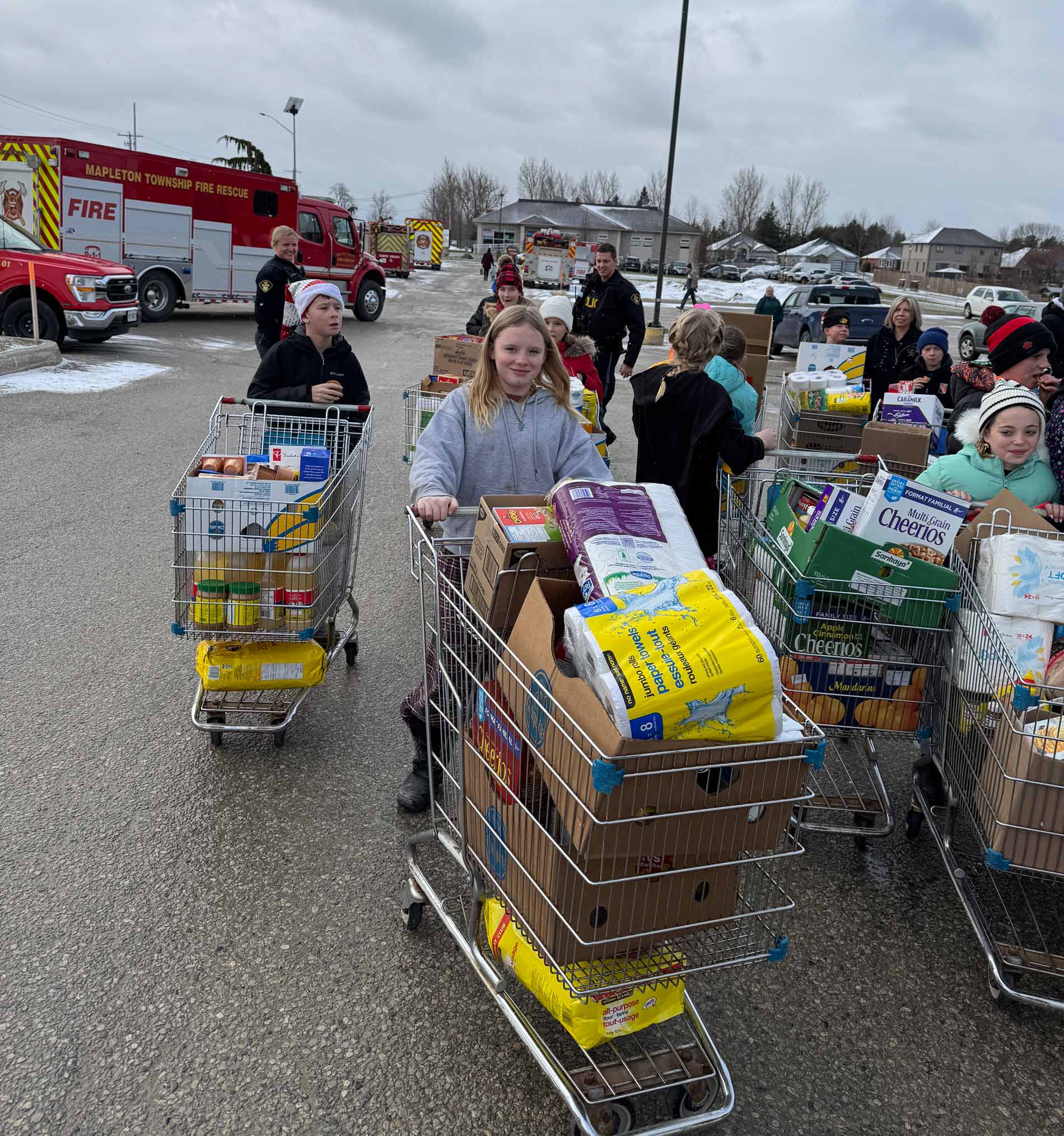 DRAYTON – Twenty-eight Grade 6 students from Maryborough Public School participated in a “Shop with a cop and a firefighter” event on Dec. 19 at the Drayton Freshmart, raising $3,000 in donations for the local food bank.