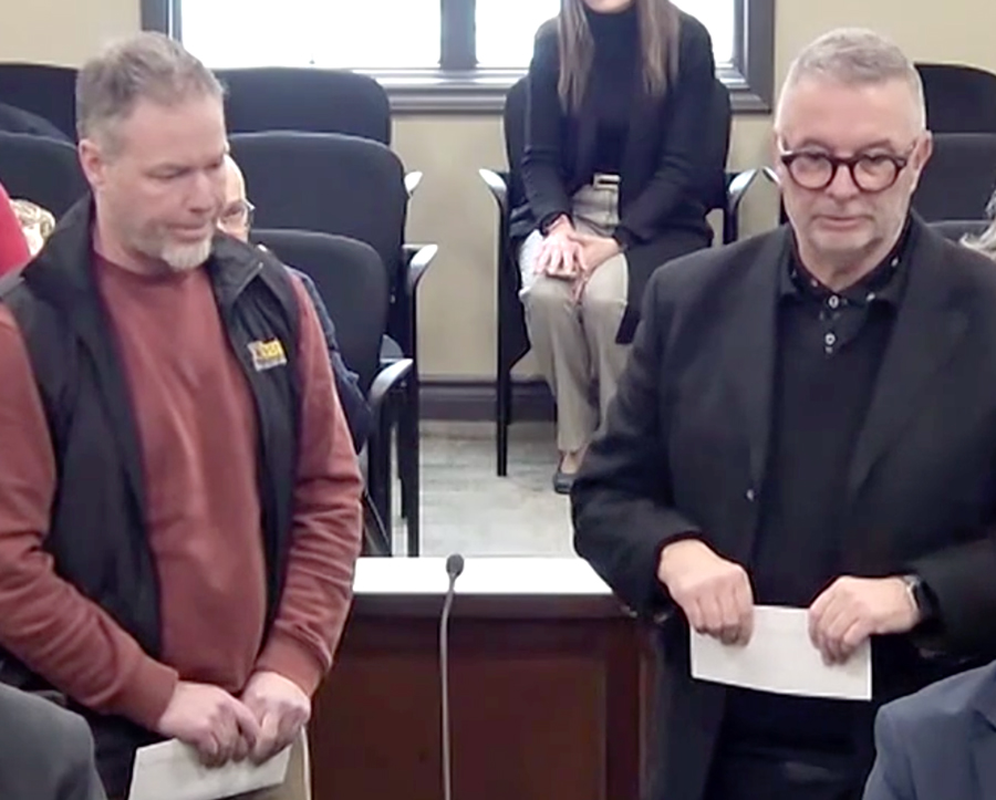 Mayor Shawn Watters presented food bank manager Curt McQueen with a cheque for $24,787 at a Dec. 15 council meeting.
