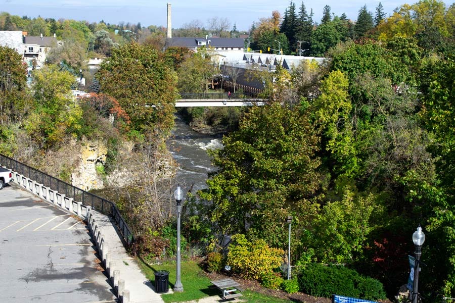 One tippy chair and one enormous leg stretch out a window later and voila – the view of the Grand River and the bird's-eye view overlooking Tower Street are both rare and stunning on a warm, sunny day in October.
