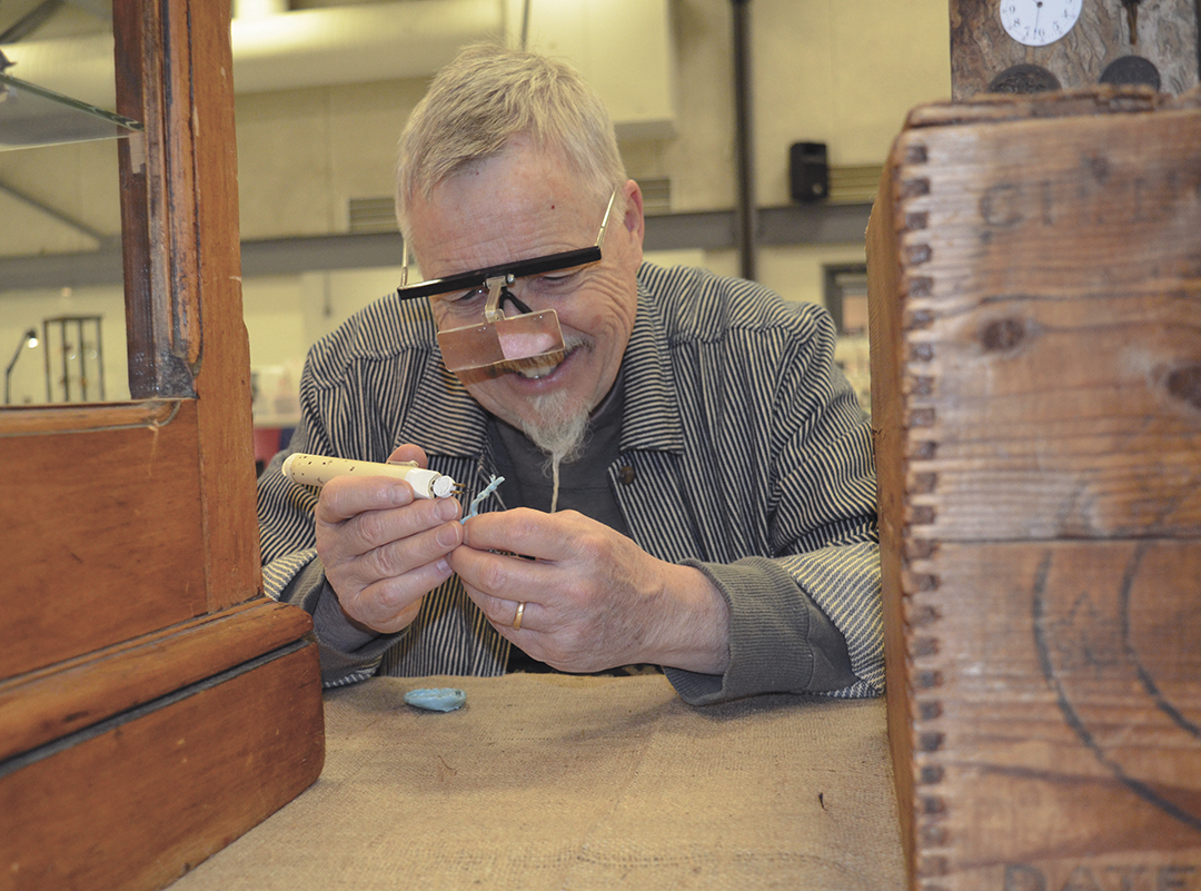 Gary Wright of Mono sculpts a tiny wax figure that will later be cast in bronze. It was one of many displays at the annual show and sale of dollhouse miniatures, hosted by the Ontario Miniature Enthusiasts of Guelph Area at the Fergus sportsplex on May 5. Photo by Phil Gravelle