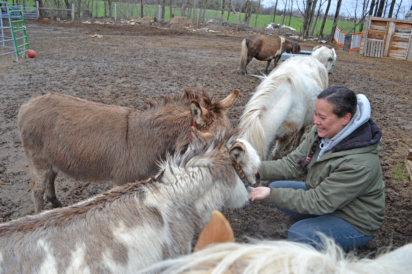 Her love for her minis is apparent in how she interacts with them. She laughs as one of her equine friends, Abby, nudges her playfully, looking for treats.