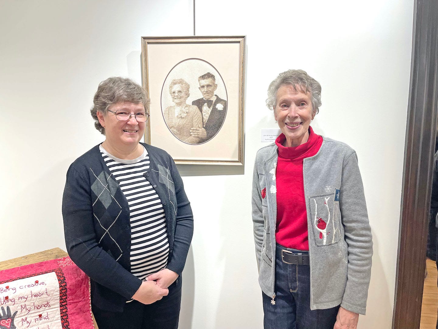 MINTO – The Minto Arts Council had around 40 people in attendance for its grand opening of its new exhibition, A Stitch in Time, on Jan. 8 on the third floor of the Harriston branch of the Wellington County Library. The gallery will be open until Jan. 30 and consists of handmade quilts by Karen Carter of Wellington North and the embroidery work of Ann Haayema from Harriston. Carter received the grand Champion Hand Quilted Quilt award, which she said was her biggest achievement from the Ontario Association of Agriculture Societies in February 2025.