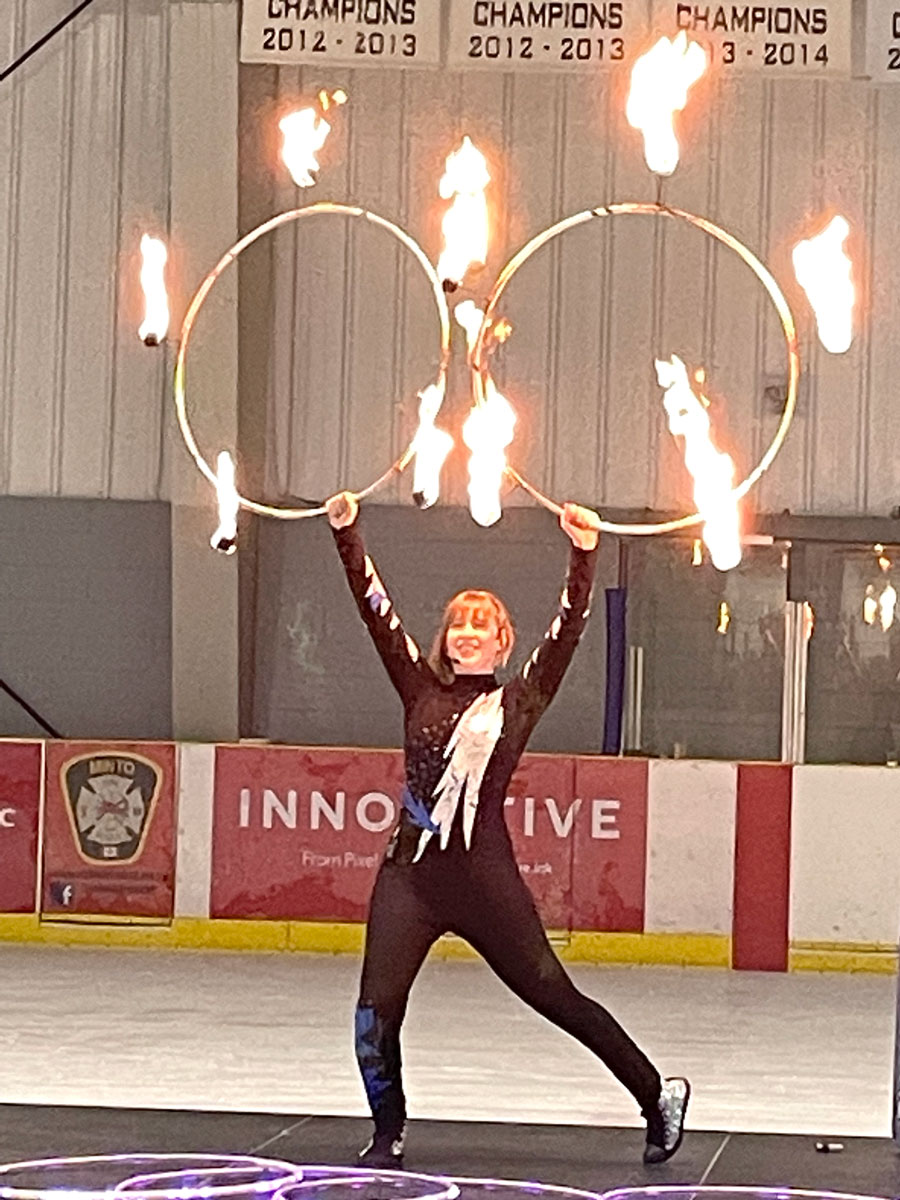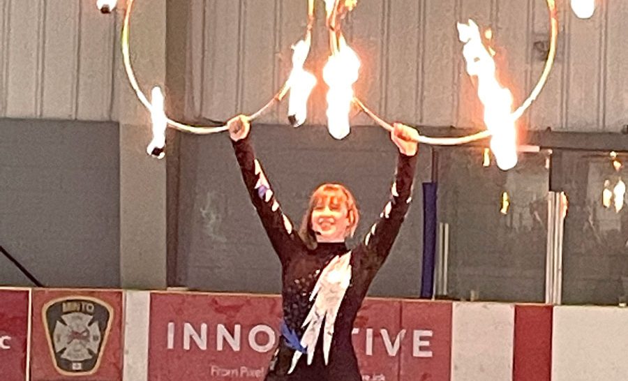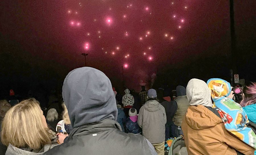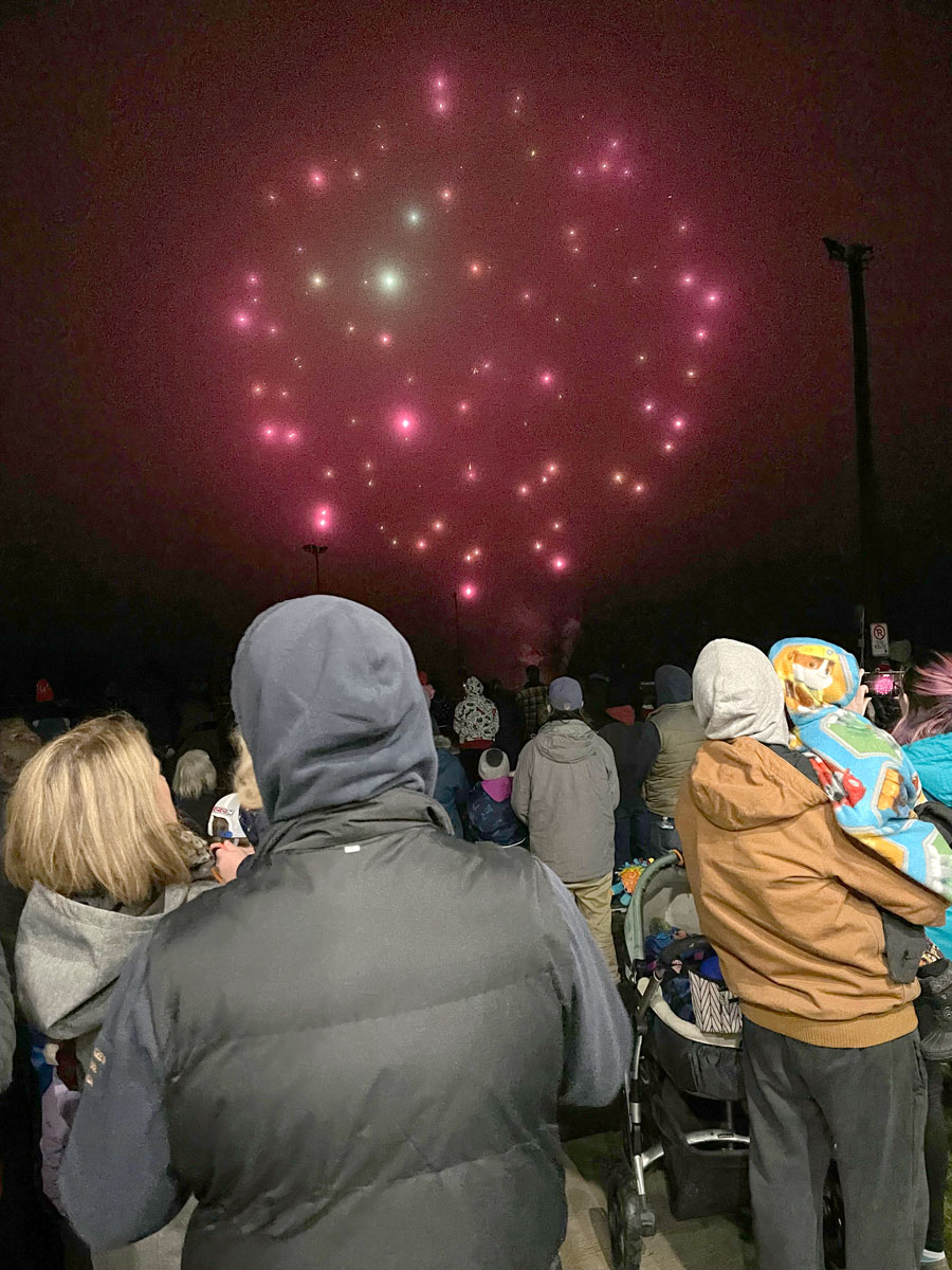 Bringing in the new year – The Fire and Ice New Year’s Eve party hosted by the Town of Minto and Minto firefighters drew a crowd of over 500 to the Palmerston arena on Dec. 31. Ice skating, a fire show, food booths and other activities were all part of the fun. A sled dog meet-and-greet was moved inside due to wet weather, but Peyton Martin was delighted to meet one of Deb Langois’ huskies all the same.