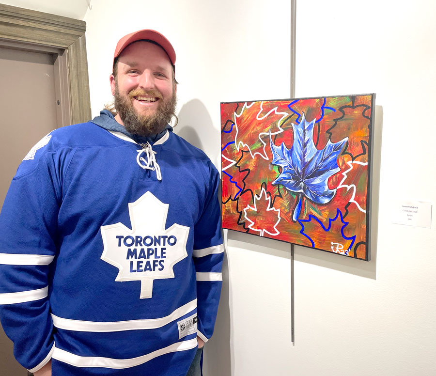 Juried art show – An artists reception was held for the Minto Arts Council Juried Art Show at the gallery in Harriston on May 4. Jason Rohrback won the People’s Choice award for his entry Go Leaves Go. Photo by Patrick Raftis