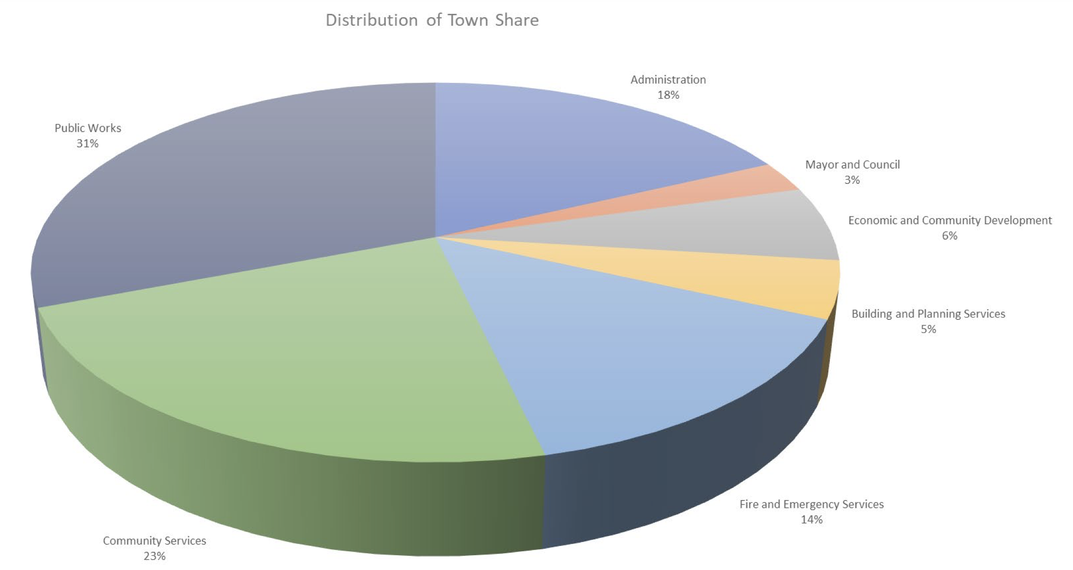 For all taxes collected, 37.3% is the town’s share, 15.4% goes towards education and 47.3% to the County of Wellington.