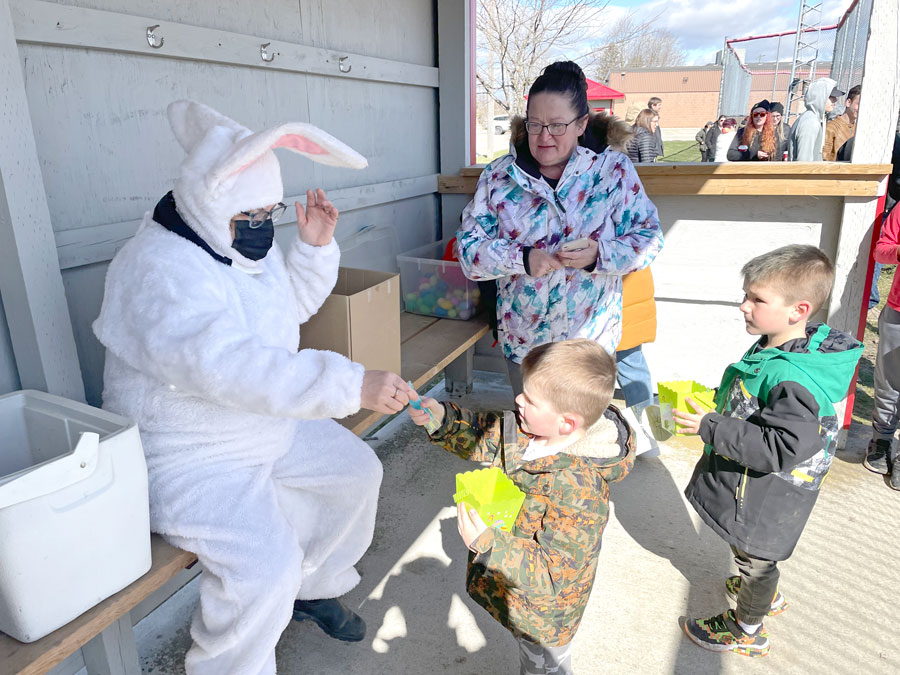 Egg hunters – After a two-year pandemic pause, the Town of Minto Optimist Club resumed hosting its annual Easter egg hunts in the town’s three urban centres on March 16. Lila, left, and Alex Myer were among those receiving treats from the Easter Bunny at the Harriston event. Egg hunts were also held in Clifford and Palmerston on Saturday morning.