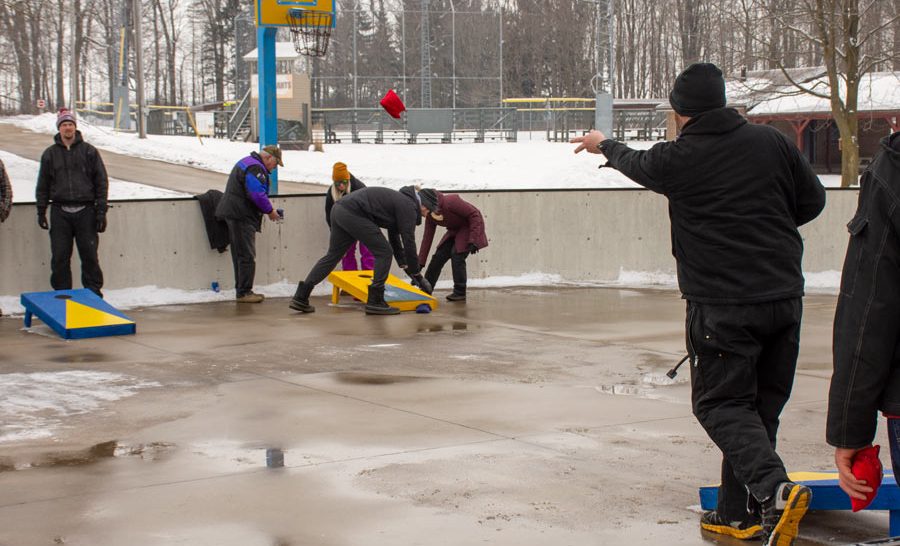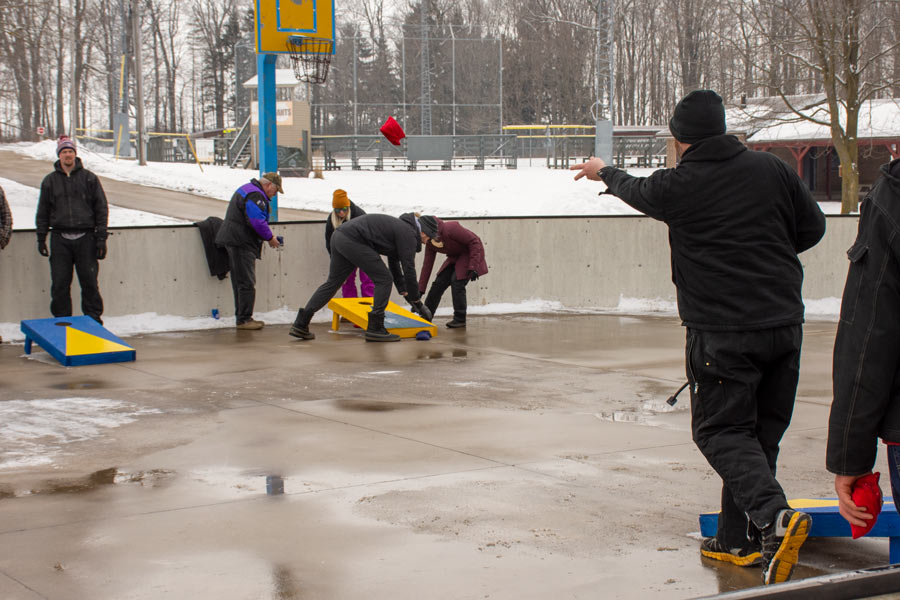 Cornhole tourney – A lack of ice forced the cancellation of the Moorefield Optimist Club’s Tin Can Classic (tin can curling) but teams showed up to compete in a cornhole tournament instead. Teams took turns playing rounds with bean bags on the rink surface at the Moorefield Optimist Hall.