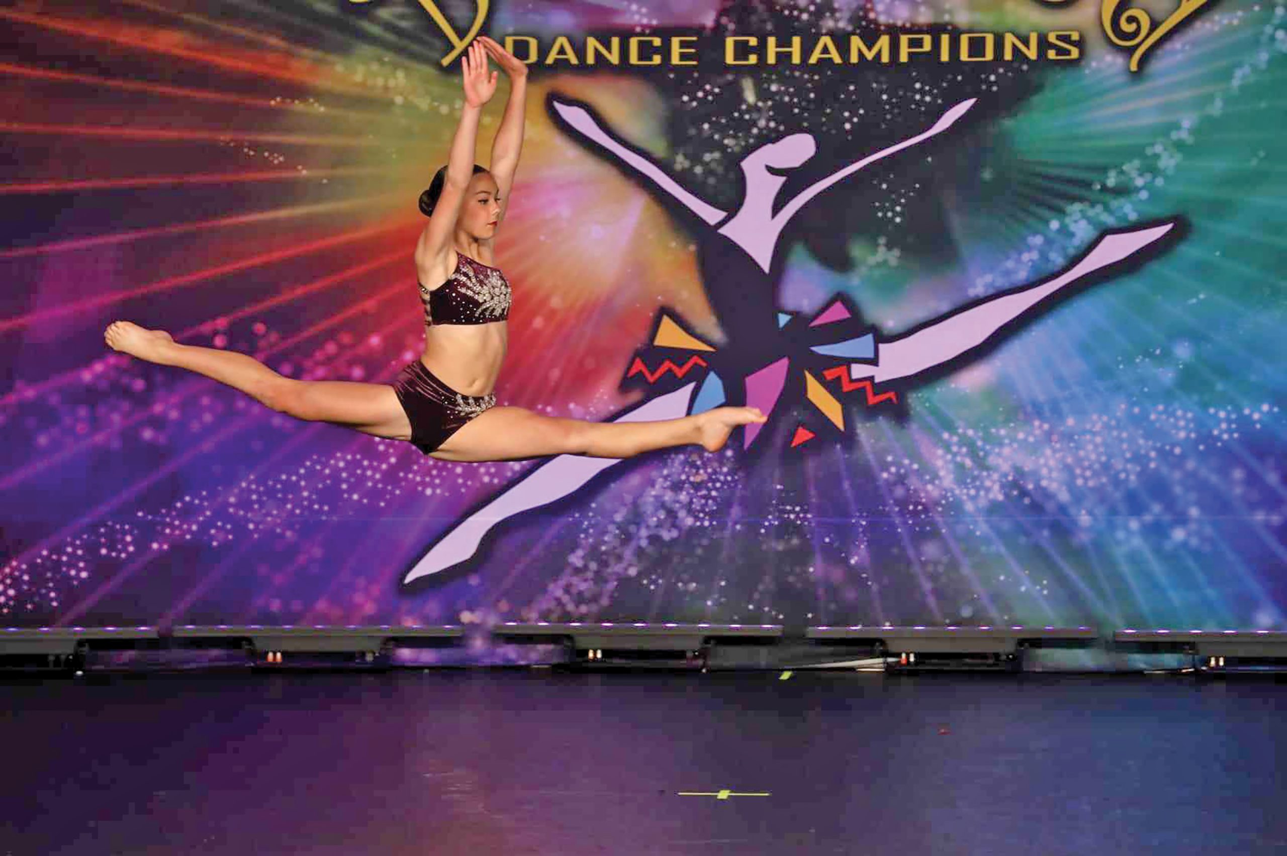 Ava Albrechtas seems to soar in this photo of her from a recent competition. Submitted photo