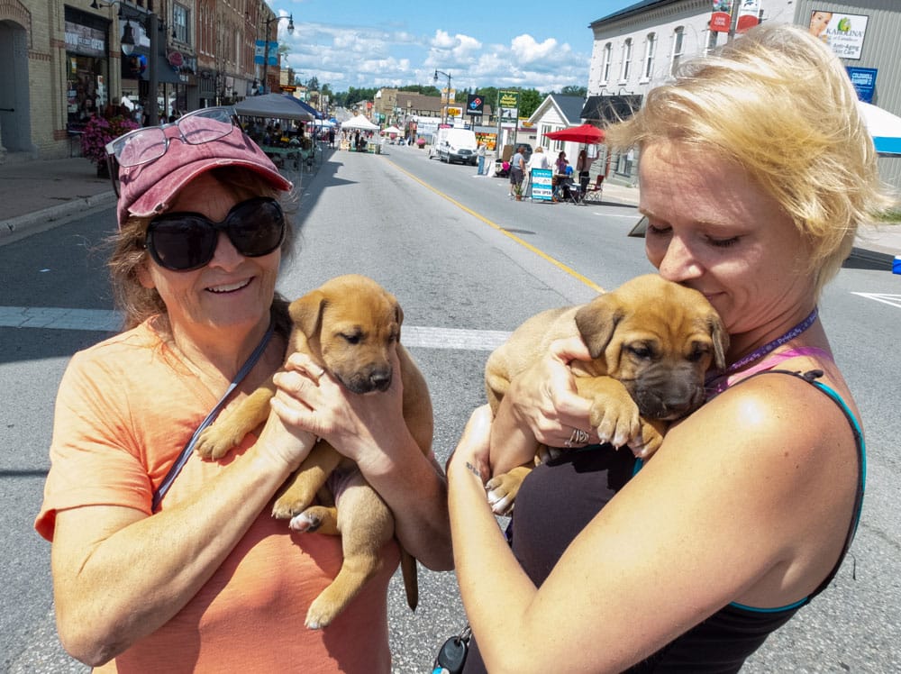 Photos by Jordan SnobelenHazel and Wendy Way walked the downtown stretch in Mount Forest with their five-week-old pups, which are German Shepherd-American bulldog crosses. The weekend sidewalk sale was the last of the season.