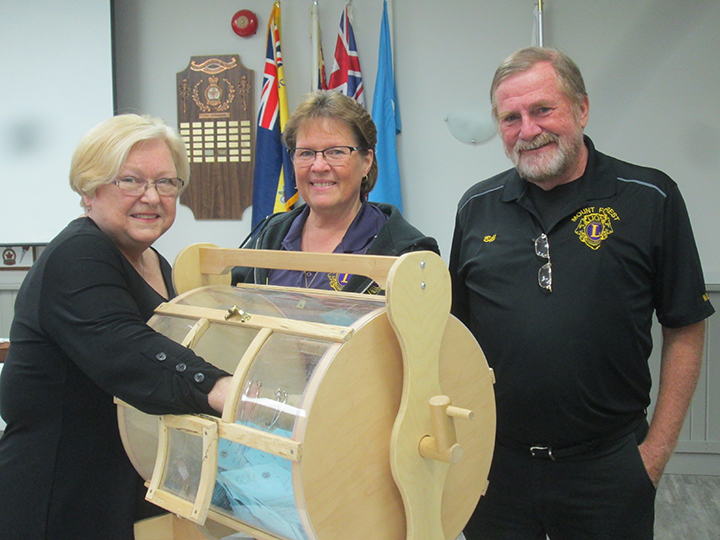 And the winners are – Mary Wenger drew the winning tickets in the Mount Forest Lions Club Light Up the Night draw at the club’s meeting on Jan. 9. She was joined by Lions draw committee chairman Chris Pfeiffer, Lion president Bill Yelland, and club members and guests. Alex Burns of St. Jacobs won $1,000; Raven and Grady Scheible of Grand Rapids, Michigan won $2,000; and the grand prize of $3,000 went to Tom Tangney of Mount Forest. The draw was to have been held the previous evening at the weekly Lions bingo but was postponed when the event was cancelled due to bad weather. Also at the meeting, Lion Al Leach was recognized for 20 years of service and Lion Bill Nelson for 40 years of service, with commendations from Lions International.